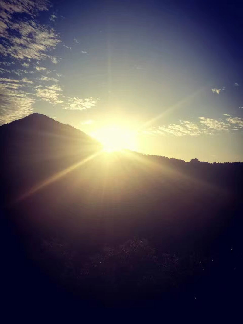 黄昏,送别阳光从身旁翻山越岭而去 。
